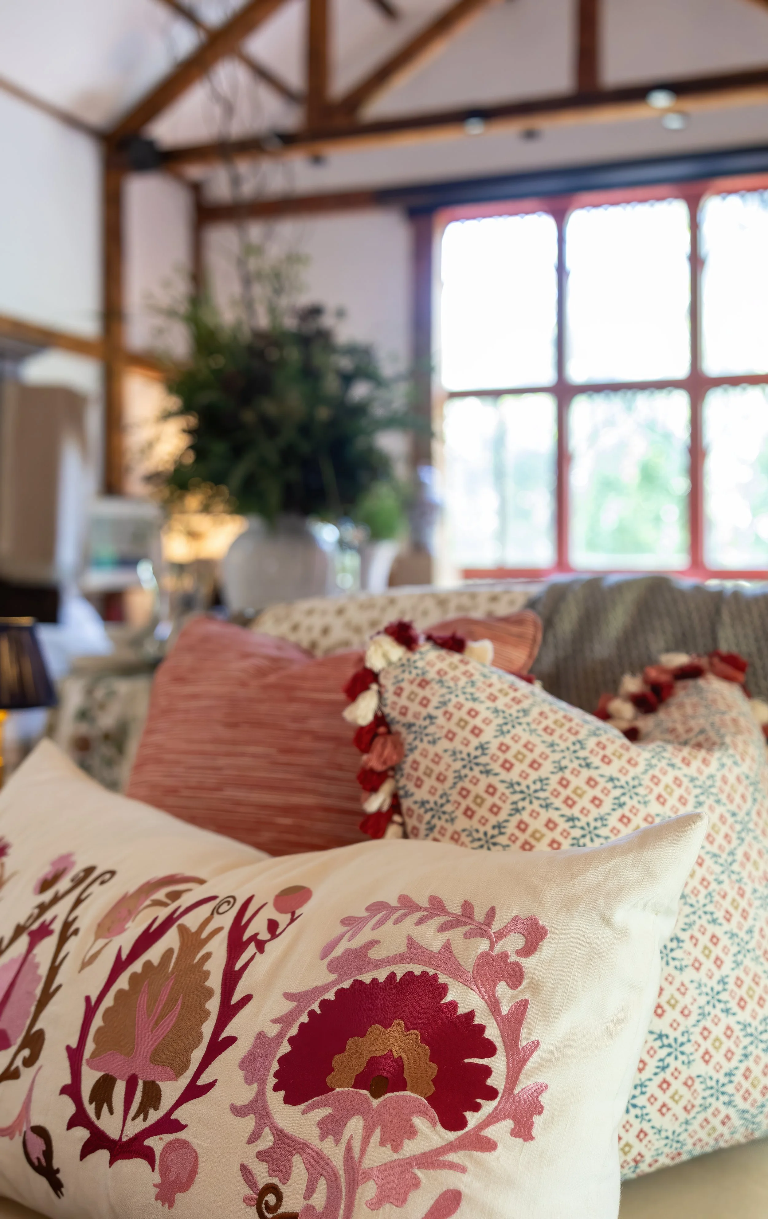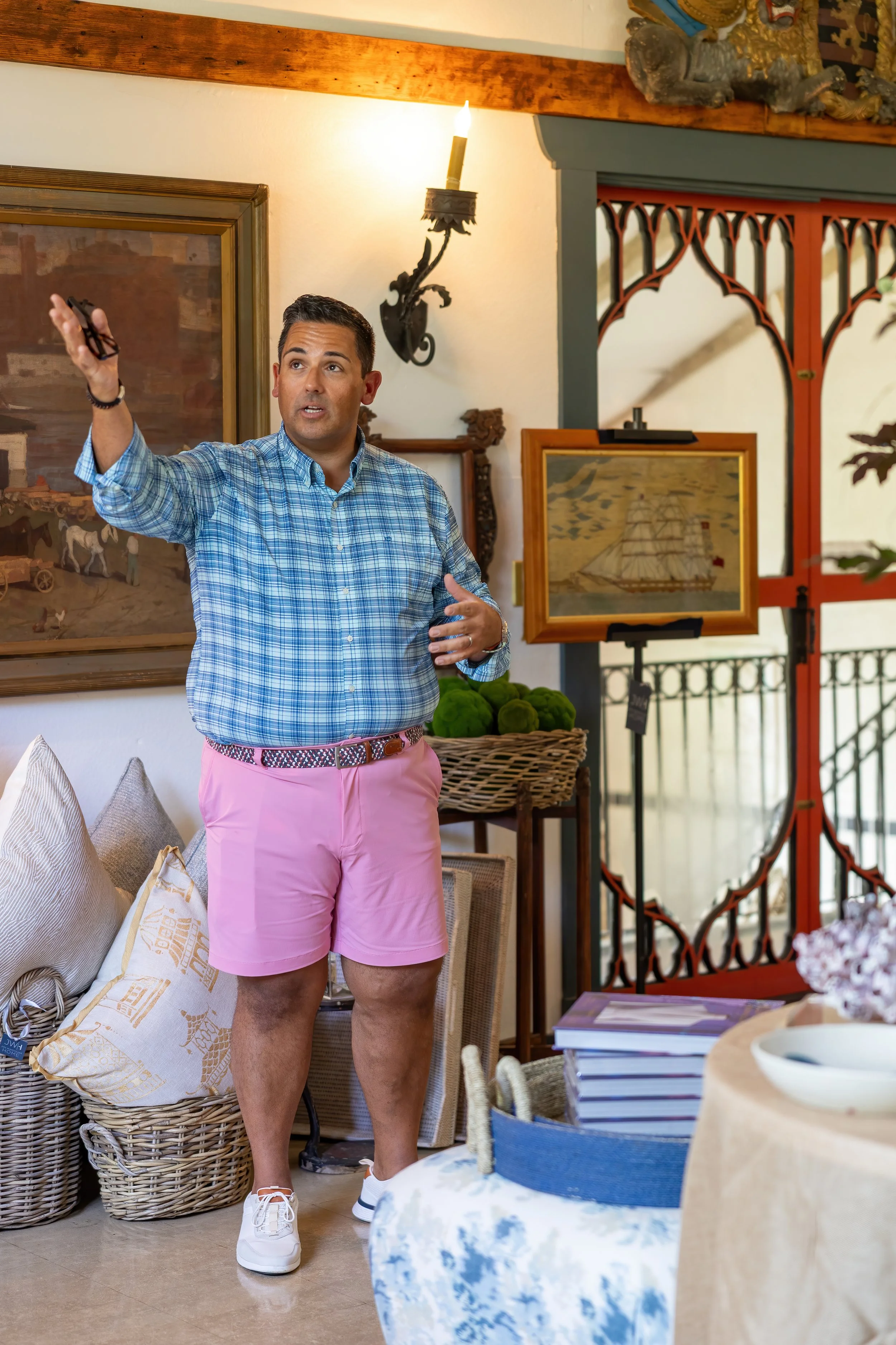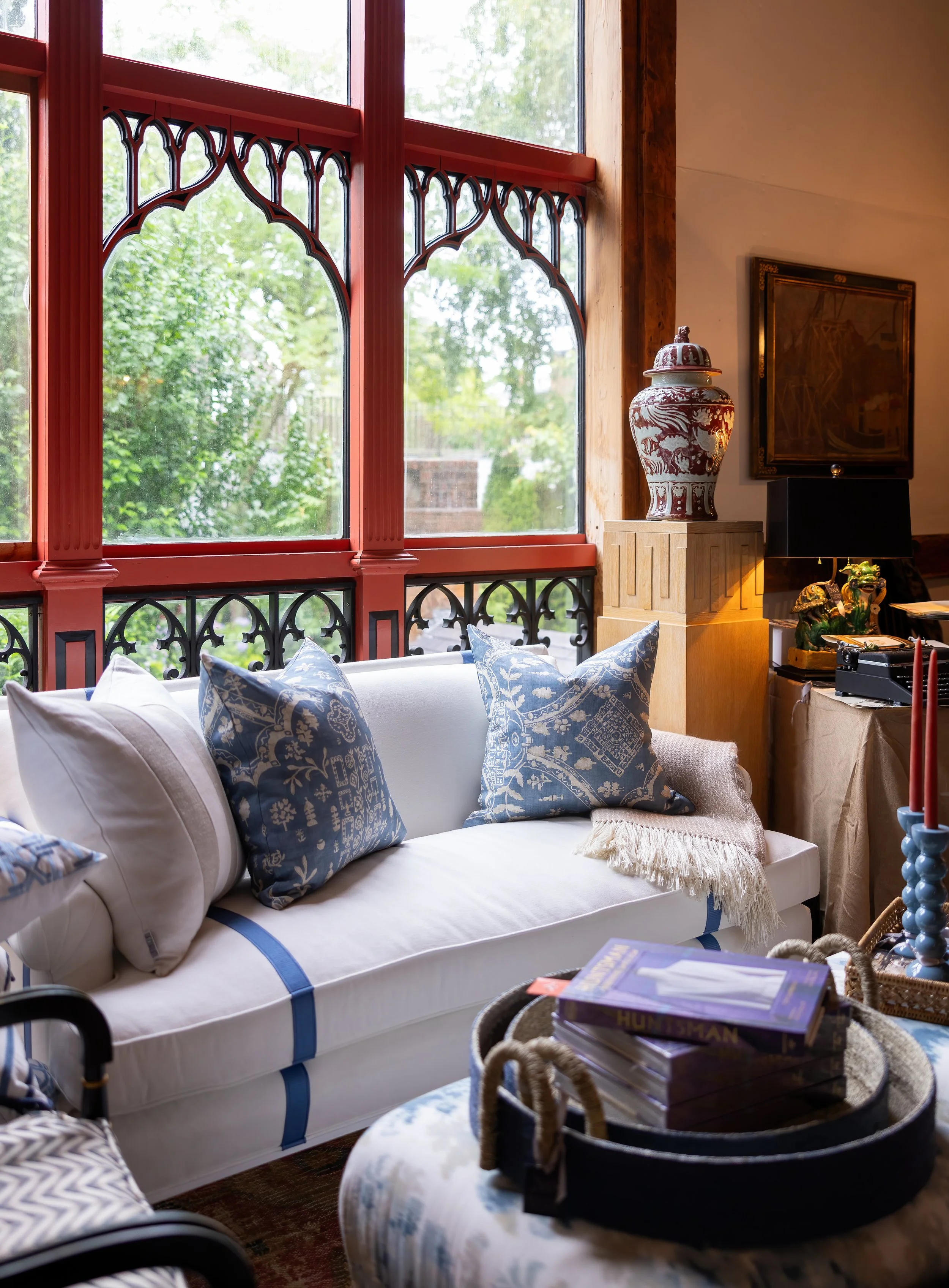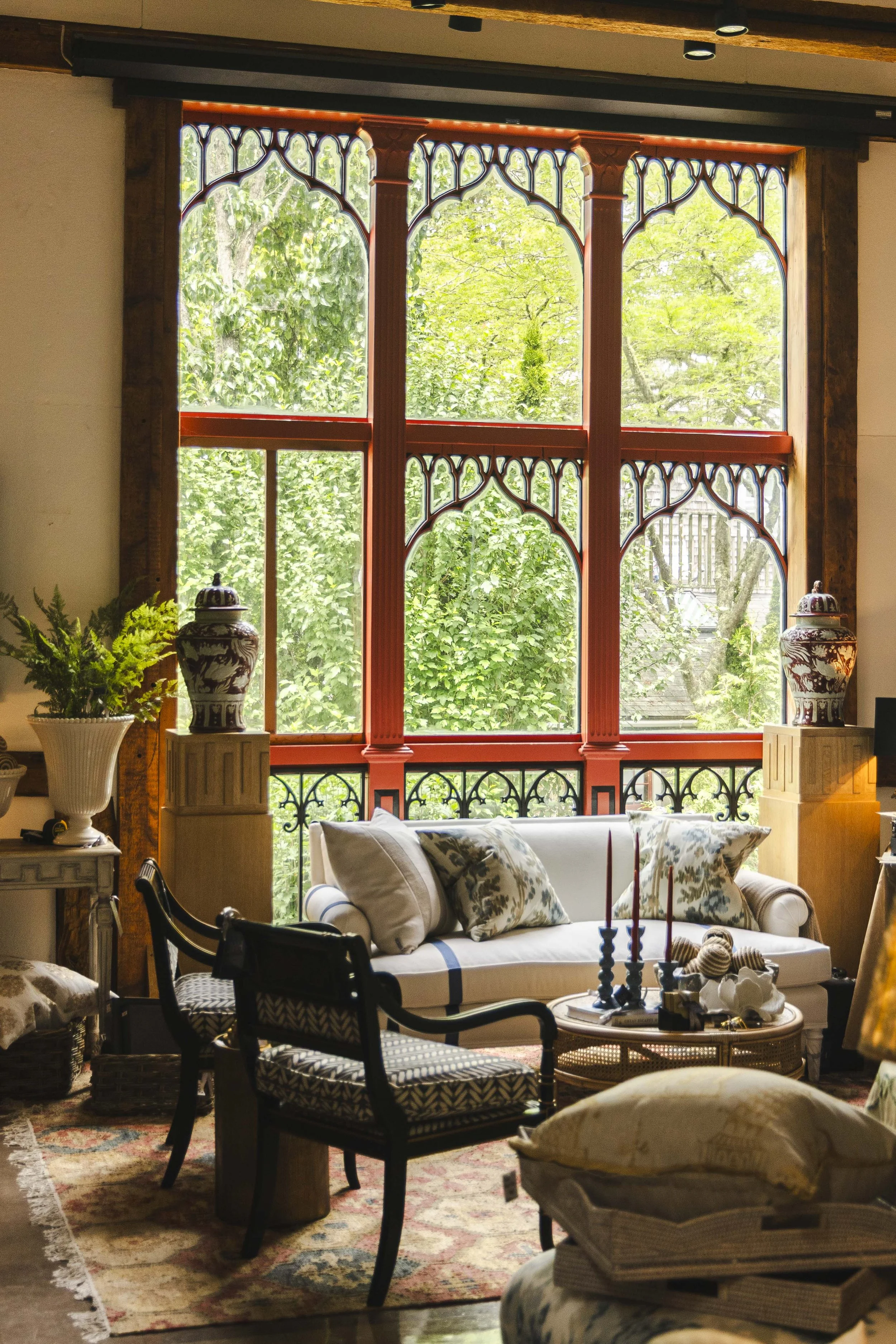 Greater Light was originally built around 1790 and used as a livestock barn until sisters, Gertrude and Hanna Monaghan discovered the building in 1929 and transformed it into their summer retreat. As a sponsor of Nantucket by Design, we were asked to recreate the space for a Work/Shop event as if the sisters were living there today. We blended art and whimsy with an appreciation of the handcrafted – whether woven, carved, forged, or painted – to create a strongly expressive environment that we believe would be well suited to their tastes.